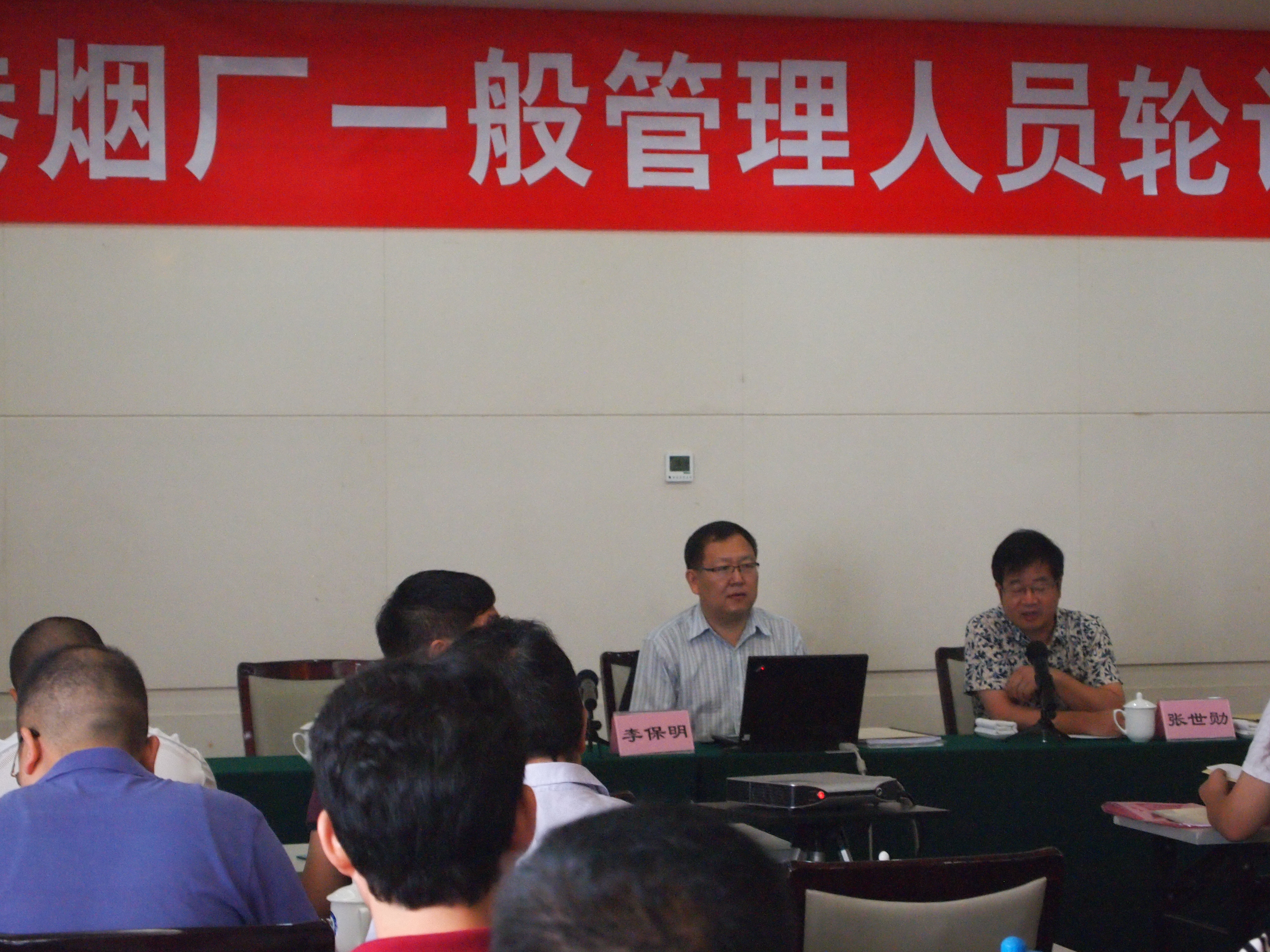 瑞信特聘培訓師李保明老師和某煙廠(chǎng)張科長(cháng)開(kāi)班講話(huà)中